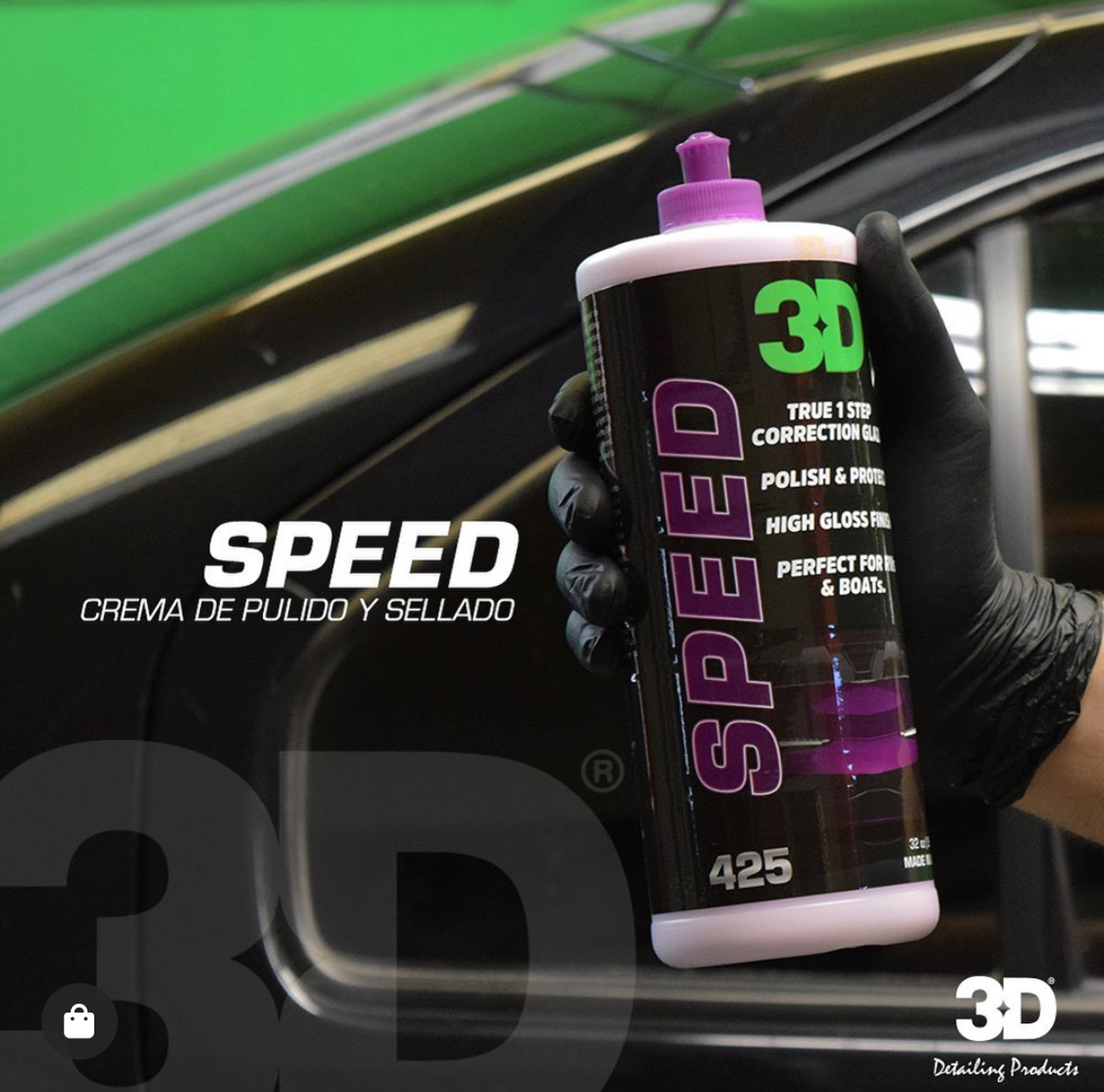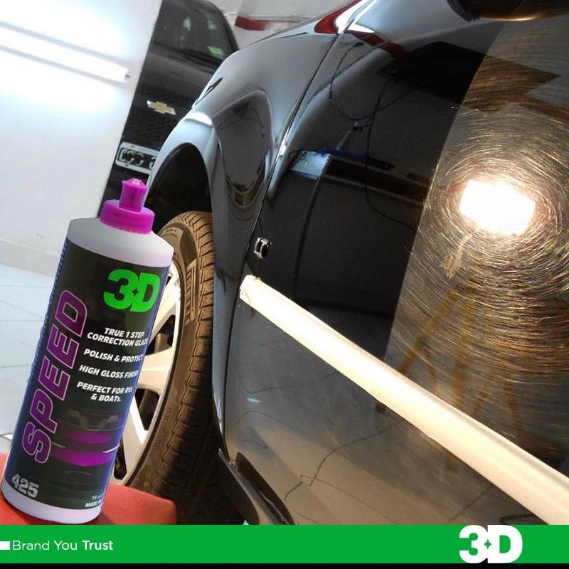 3D Speed is an all-in-one cleaner, polish and sealant that will have your vehicle looking shiny, swirl-free and waxed in one step. 3D Speed removes light to moderate surface scratches and swirl marks while refining the paint to create unmatched levels of shine for an all-in-one polish. 3D Speed is great for those who want quick, minor paint correction with protection.