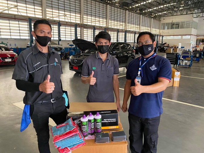 ขอบคุณศูนย์รถยนต์ Mazda ให้ความไว้วางใจ ให้ทางทีมงานเข้าผึกอบรมศูนย์รถยนต์ Mazda โดยทางบริษัทได้นำหลักสูตรจาก 3D ในประเทศสหรัฐอเมริกาในการฝึกอบรมโดยผู้เชี่ยวชาญที่ผ่านการรับรองจากสถาบัน 3D Academy ในประเทศสหรัฐอเมริกา เพื่อเพิ่มประสิทธิภาพในการทำงาน และสามารถสร้างความประทับใจให้กับลูกค้าได้ โดยการนำนวัตกรรมล่าสุดในการดูแลรถจากประเทศสหรัฐอเมริกา (Made in USA) ที่ช่วยเพิ่มความเงางามให้กับรถของลูกค้าทุกคันที่มารับบริการ
